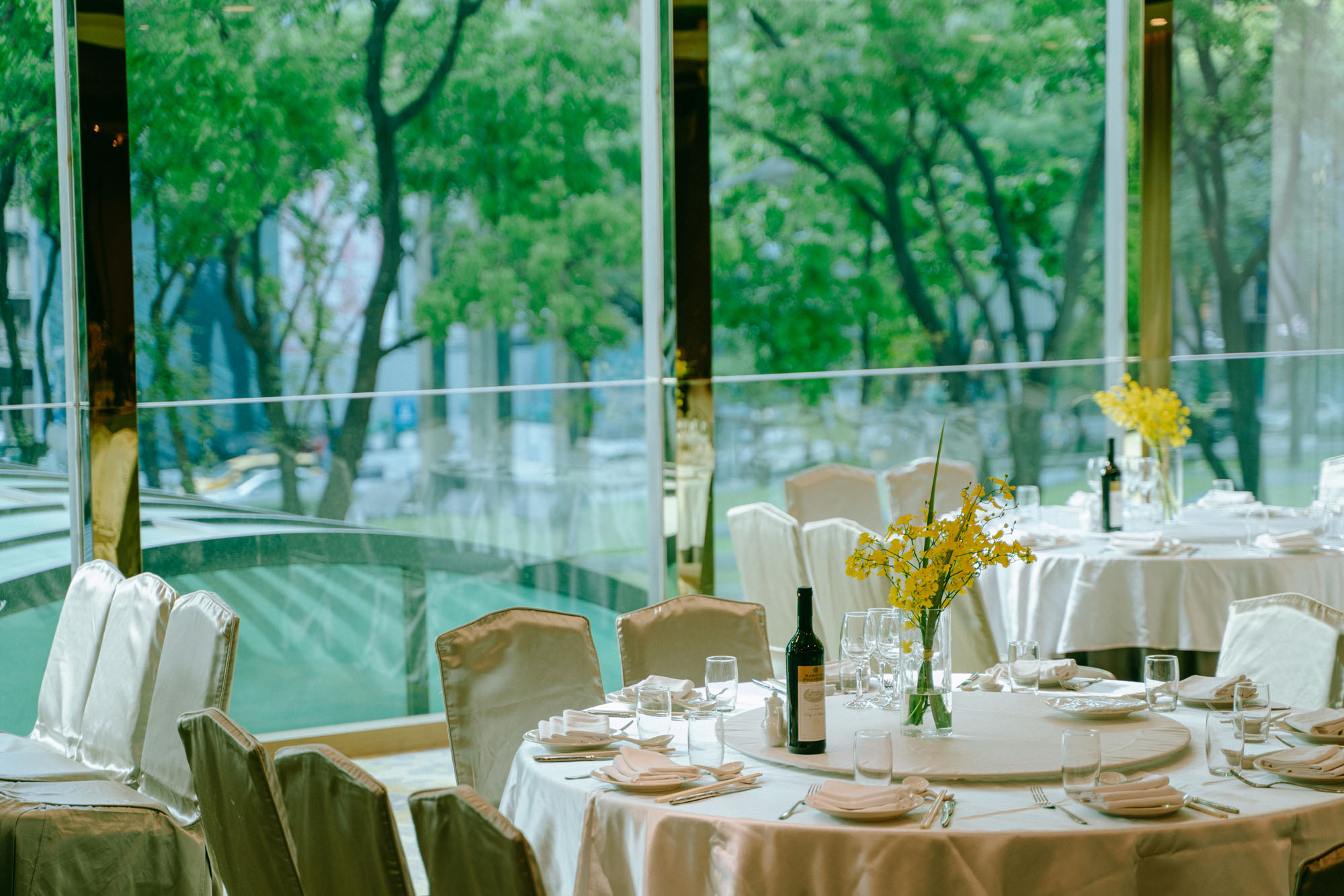 擁有大範圍明亮落地玻璃窗,將草悟道的綠意引入,沐浴於清新自然中,是台中宴會場地中最具清新典雅風格。